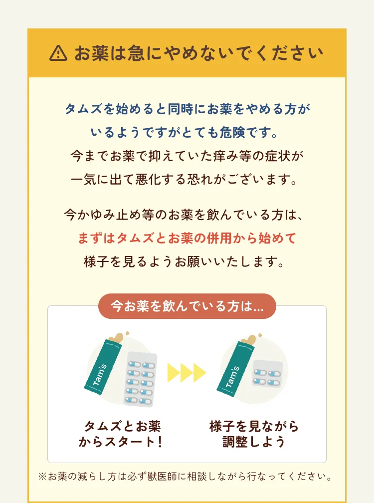 tam'sは栄養補助食品のため、薬と併用しても問題ございません。