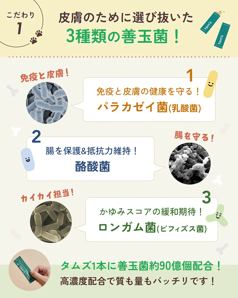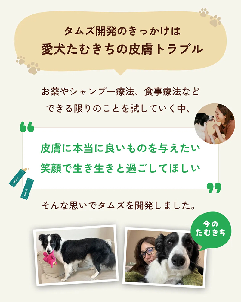 皮膚、被毛、免疫機能の健康維持を考えたおやつサプリです。