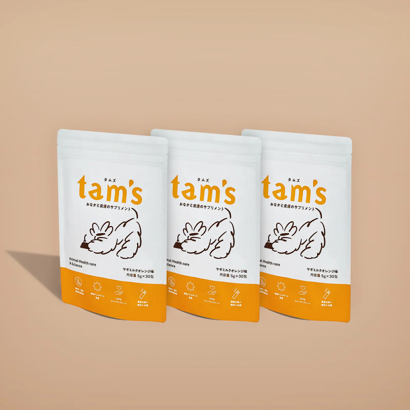 【定期発送】 tam'sおなかと皮膚のサプリメント ヤギミルクオレンジ味 30包入り 3個セット(大型犬にオススメ)